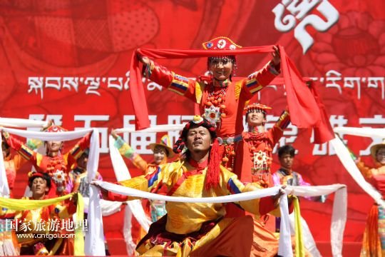 國(guó)家旅游地理 西藏阿里8月3日訊 8月3日,當(dāng)?shù)厝罕娫陂_(kāi)幕式上表演富有民族特色的歌舞《美麗的阿里》。當(dāng)日,西藏阿里地區(qū)第五屆象雄文化旅游節(jié)在獅泉河文化廣場(chǎng)開(kāi)幕。此次文化旅游節(jié)將舉辦阿里象雄文化研討會(huì)、旅游紀(jì)念品展覽、攝影展等十余項(xiàng)活動(dòng)。 / 新華社發(fā)(蔣先平 攝)