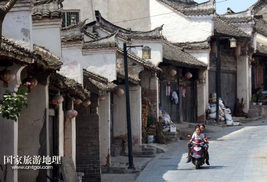 這條南北走向的小街,全長(zhǎng)約5里,現(xiàn)存明清時(shí)代的建筑700余間,大多保存完好。其中有豪紳商賈所建的會(huì)館、廟宇,也有一般的民房,建筑造型各有特色。古街的宅樓構(gòu)件,無(wú)不以石雕、磚雕、木雕藝術(shù)烘托而成。各種造型的石坊、門(mén)墩、柱礎(chǔ)、檐楣,可謂各具匠心,生動(dòng)逼真。