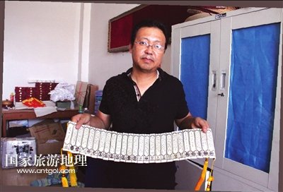 說起他們引以為傲的骨雕作品時(shí),哈斯達(dá)來老師告訴記者,那就是經(jīng)過40多人花費(fèi)4個(gè)多月時(shí)間純手工雕刻,于2008年8月完成的《蒙古秘史》。為了完成這件藝術(shù)作品,他們從3000多頭牛中挑選出6000塊牛大骨(每頭牛只有2塊牛大骨),再從中選出同樣尺寸的4000多塊牛大骨,然后經(jīng)過消毒、打磨,選用了其中的1400塊進(jìn)行雕刻。骨雕作品《蒙古秘史》共12章282節(jié),長32米,寬15厘米,現(xiàn)陳列于內(nèi)蒙古師范大學(xué)文學(xué)館內(nèi),正在申報(bào)吉尼斯世界紀(jì)錄。哈斯達(dá)來老師希望通過此種形式,進(jìn)一步展現(xiàn)骨雕藝術(shù)的魅力。有了經(jīng)驗(yàn)以后,2009年8月,他們又完成了《蒙古秘史》的第二次雕刻,這次的作品長29米,寬12.4厘米,骨頭厚度0.3厘米,現(xiàn)陳列于該校的展覽館內(nèi)。