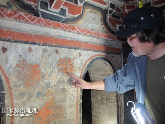 國(guó)家旅游地理 陜西延安9月15日訊 9月14日,考古學(xué)家正在查看畫像磚墓內(nèi)的壁畫。經(jīng)過(guò)近三個(gè)月的緊張工作,陜西省考古學(xué)家日前在陜西延安配合基建時(shí),首次對(duì)一座宋金時(shí)期大型畫像磚墓進(jìn)行了科學(xué)考古發(fā)掘。發(fā)現(xiàn)這座畫像磚墓竟是仿木磚結(jié)構(gòu)多室墓,對(duì)了解和研究陜北畫像磚墓形制、建筑結(jié)構(gòu)及其分布與內(nèi)容等,具有重要的標(biāo)尺性意義。 /新華社記者馮國(guó)攝