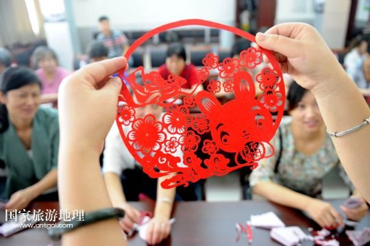 國家旅游地理 安徽合肥9月17日訊 9月17日,非遺剪紙傳人侯宏妹向?qū)W員講解“花好月圓”剪紙作品的制作。當日,合肥市清溪路社區(qū)邀請非物質(zhì)文化遺產(chǎn)剪紙傳人侯宏妹來到社區(qū)向剪紙愛好者傳授技藝,并一起創(chuàng)作中秋題材的剪紙作品,迎接中秋佳節(jié)。 /新華社記者劉軍喜攝