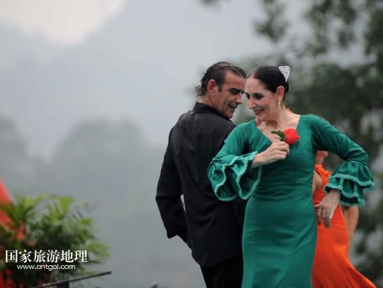 國(guó)家旅游地理 湖北宜昌9月17日訊 9月17日,宜昌長(zhǎng)陽土家族藝術(shù)團(tuán)在現(xiàn)場(chǎng)表演。當(dāng)日,部分來自澳大利亞、西班牙、俄羅斯、捷克、蒙古國(guó)的藝術(shù)團(tuán)來到湖北宜昌清江畫廊景區(qū),與當(dāng)?shù)厥忻襁M(jìn)行民俗藝術(shù)表演交流。