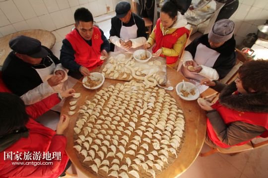 12月21日,山東省郯城縣供電公司的青年志愿者來到郯城街道敬老院,與老人們一起包餃子,拉家常,迎接冬至的到來。