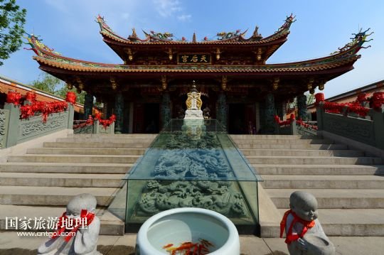 這是臺兒莊古城在原址復建的媽祖廟(4月7日攝)。作為京杭運河上重要的水旱碼頭之一,臺兒莊的建筑融合了多種文化元素。