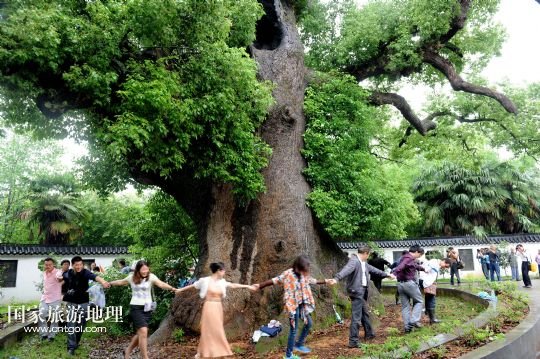 國(guó)家旅游地理 江西上饒5月18日訊 5月17日,游客在江西省德興市??阪?zhèn)??诖迩旯耪僚酝嫠!=魇〉屡d市??阪?zhèn)海口村有一棵1800多歲“高齡”的巨型古樟樹(shù),歷史上曾遭受過(guò)多次雷擊、火災(zāi)等,其中最近的一次發(fā)生在2010年10月1日,由于村內(nèi)孩童進(jìn)入可容納幾十人的樹(shù)洞內(nèi)玩耍,不慎引發(fā)火災(zāi),致使大火從樹(shù)洞里燒起,讓這棵千年古樟幾近滅頂。此后,當(dāng)?shù)卮迕褡园l(fā)捐款近6萬(wàn)元,請(qǐng)來(lái)有關(guān)專(zhuān)家救治。經(jīng)過(guò)近4年的精心護(hù)救,如今這棵千年古樟再度逢春,枝繁葉茂,吸引了各方游客前來(lái)觀賞。 /新華社發(fā)(卓忠偉 攝)