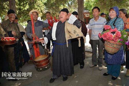 5月28日,傳統(tǒng)老北京吆喝表演者在后海小廣場表演叫賣吆喝。