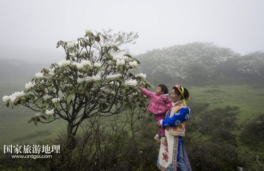 國家旅游地理 四川阿壩州6月12日訊 6月10日,一對母女觀賞夾金山上盛開的高山杜鵑。夏天的夾金山,草甸泛綠、百花盛開,雨后云霧繚繞、景色宜人。夾金山屬邛崍山脈,位于四川省阿壩州小金縣和雅安市寶興縣交界處,面積達2萬多公頃,是國家森林公園,也是中國工農紅軍萬里長征翻越的第一座大雪山。 /新華社記者江宏景攝