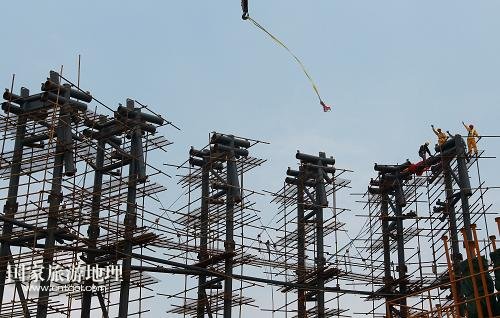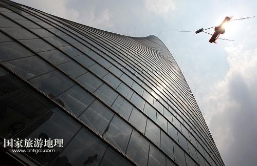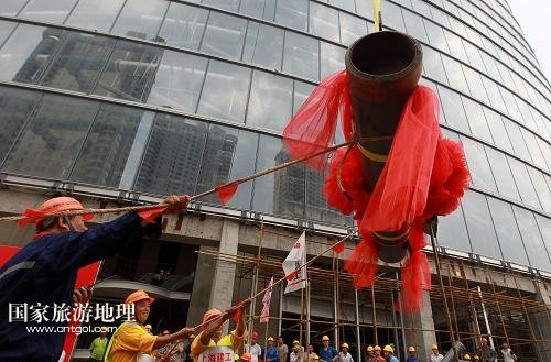 國家旅游地理 上海8月3日訊 8月3日,上海機械施工集團公司的工程人員指揮最后一榀桁架的吊裝。當日上午,隨著塔冠結構中最后一榀鰭狀桁架緩緩起吊并安裝到位,歷時近6年建設的“上海中心”按計劃順利達到設計高度632米,刷新了“申城之巔”的新紀錄。據(jù)介紹,“上海中心”2014年年底將實現(xiàn)除酒店精裝修部分外的土建竣工,2015年年中將投入運營。新華社記者 裴鑫 攝
