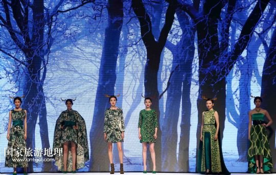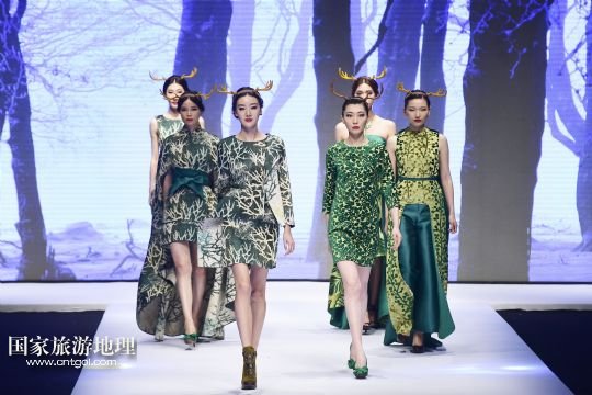 5月9日,模特在“2015杭州國(guó)際時(shí)尚周”開(kāi)幕式上展示英國(guó)寶萊達(dá)服裝設(shè)計(jì)公司主題為“樹(shù)靈派對(duì)”的時(shí)裝。
