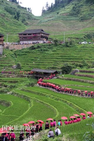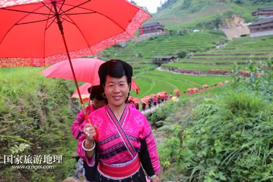 每年農(nóng)歷五月十四日、十五日是廣西桂林龍勝各族自治縣泗水鄉(xiāng)潘內(nèi)瑤寨紅瑤同胞與親朋好友聚會的日子,亦稱當(dāng)?shù)噩幷?ldquo;紅衣節(jié)”。紅瑤同胞相約在這期間開展唱瑤歌、評寨花、傳統(tǒng)刺繡、打旗公等傳統(tǒng)特色活動。紅瑤是瑤族的一個(gè)支系,因喜穿紅色衣服而得名。 /新華社發(fā)(石農(nóng)兵 攝)