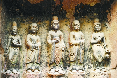 圖為炳靈寺126窟正壁石雕