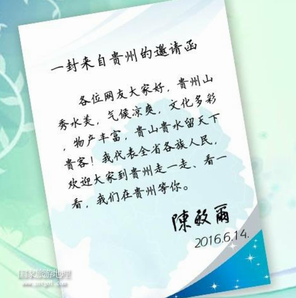 貴州省委書記陳敏爾網(wǎng)絡(luò)邀請(qǐng)大家到貴州旅游做客(圖)