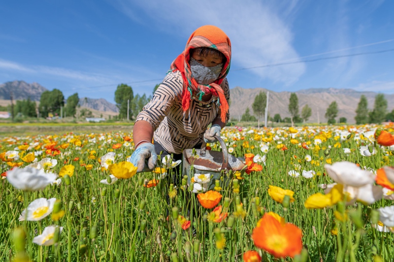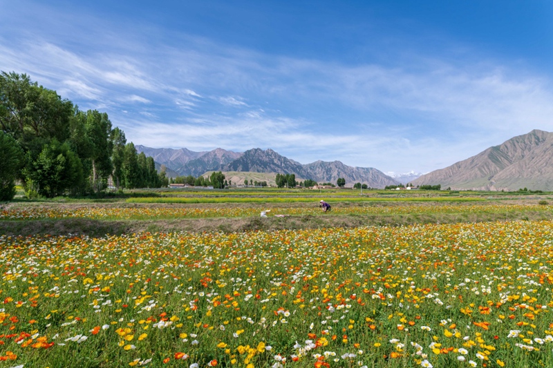 時值盛夏,地處祁連山北麓高海拔山區(qū)的甘肅省高臺縣新壩鎮(zhèn)紅沙河村種植的虞美人繽紛綻放,形成花海景觀。近年來,高臺縣新壩鎮(zhèn)將花卉蔬菜制種作為特色產業(yè)來抓,積極引導農戶規(guī)?;⒓谢N植,成為當地農業(yè)增效、農民增收的支柱產業(yè)之一。